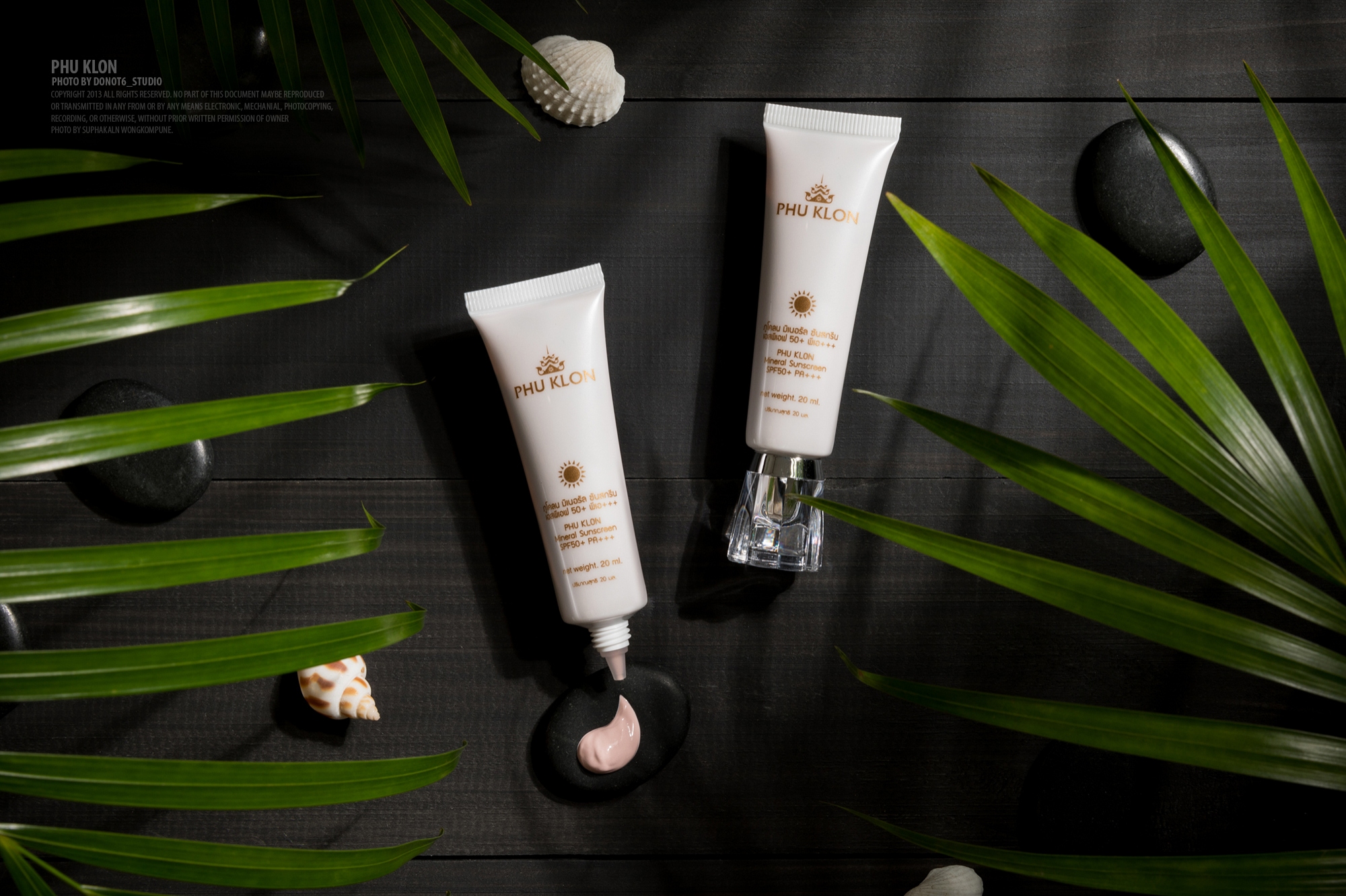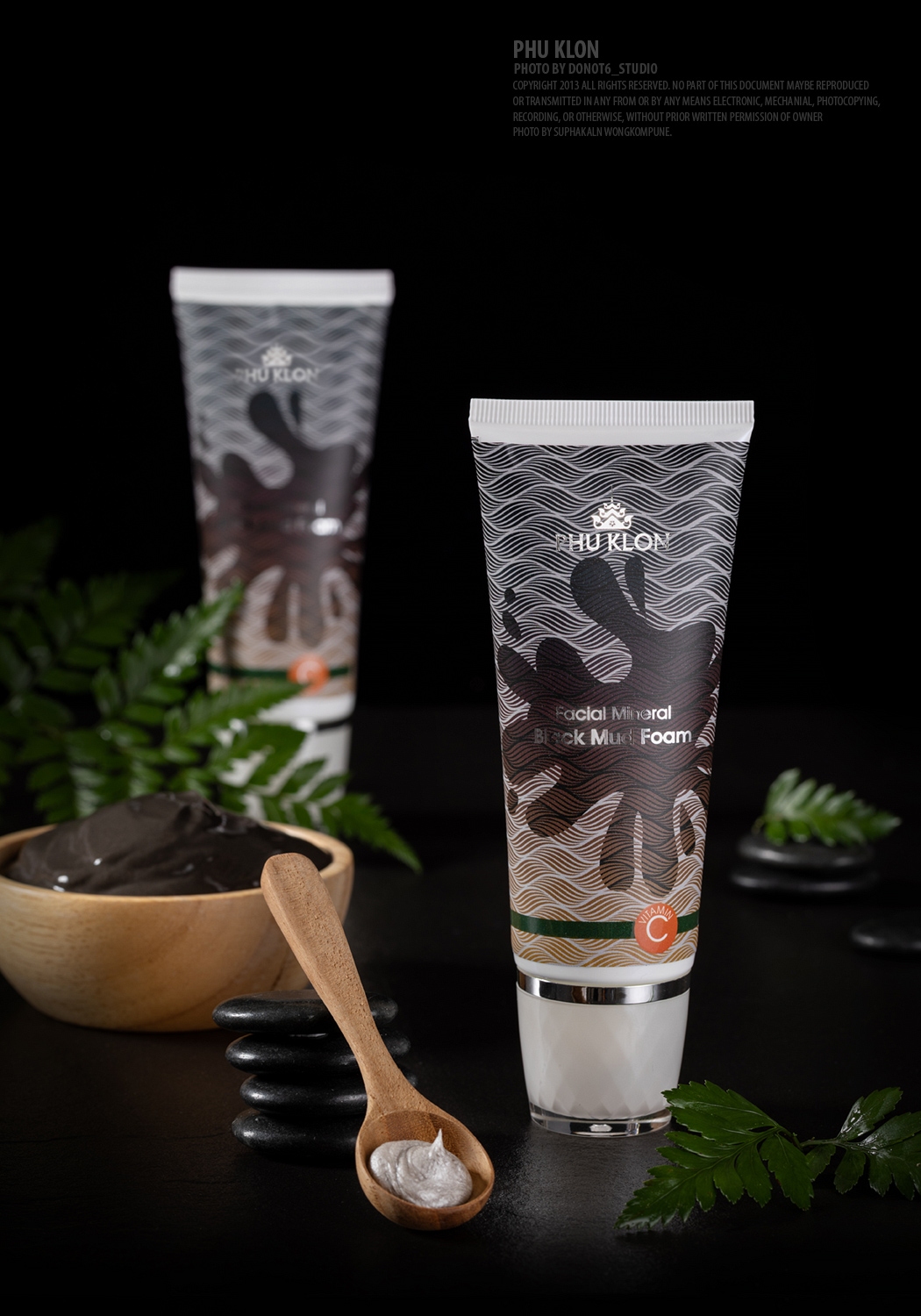 ภาพถ่ายผลิตภัณฑ์บำรุงผิวหน้าภูโคลน เน้นความหรูหราและเลือกใช้พร๊อพประกอบที่เป็นส่วนประกอบของผลิตภัณฑ์ทั้งของแบบ